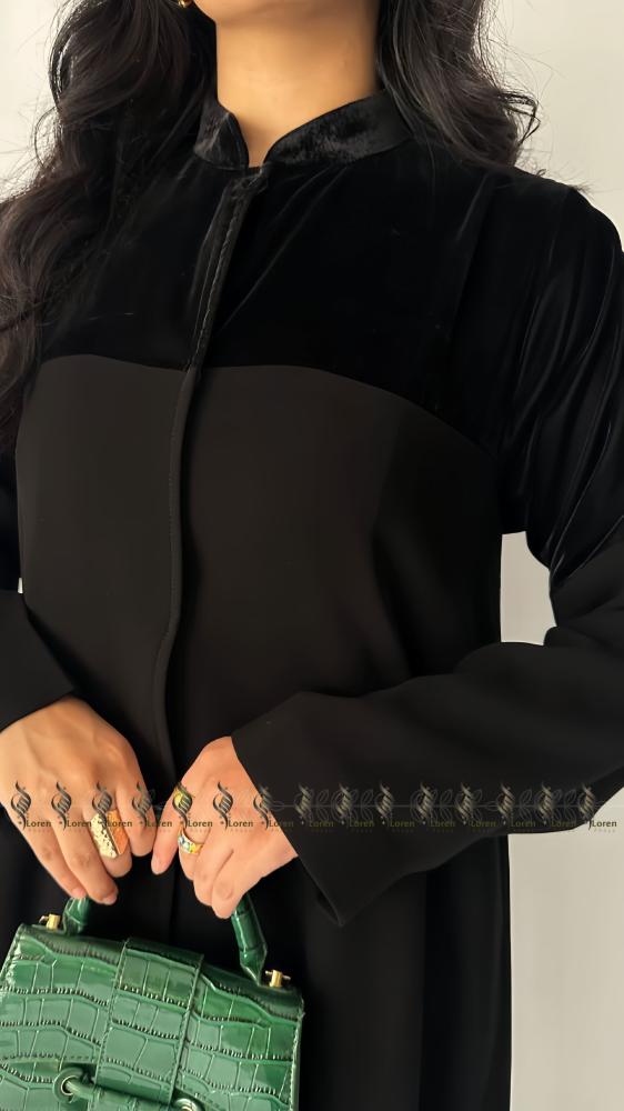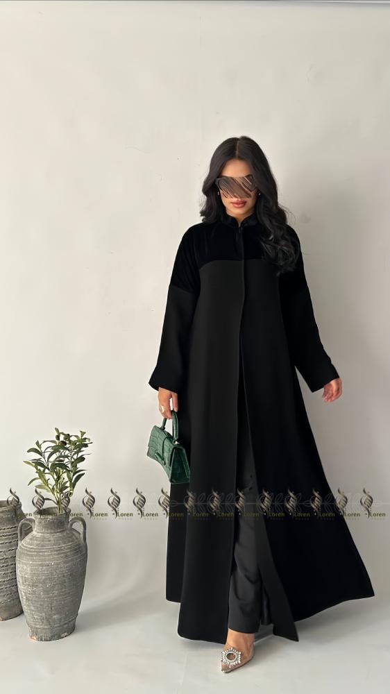 - القماش المستخدم في عباية قماش واقف سهل العناية به، ويتميز بقدرته على الحفاظ على شكله ورونقه مع مرور الوقت.