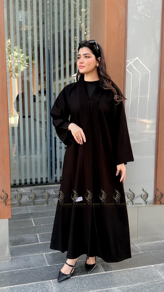 • التصميم: قصّة انسيابية كلاسيكية مزودة بتطريز فاخر على الظهر يبرز الطابع الراقي للعباية.