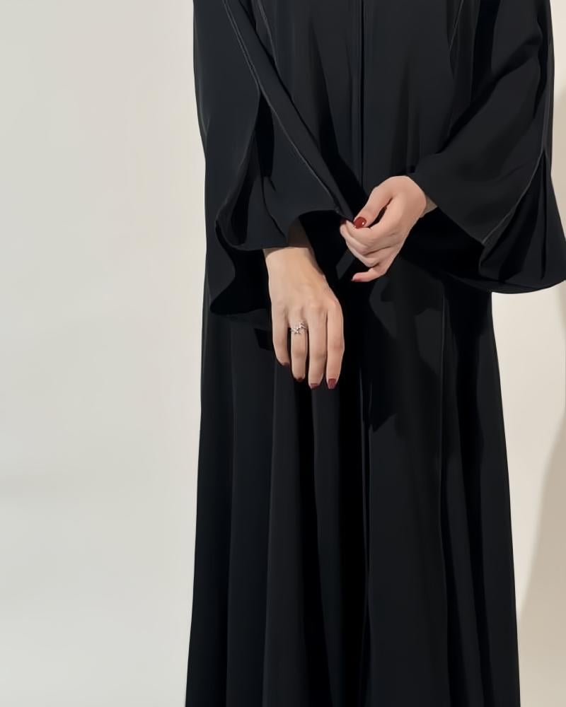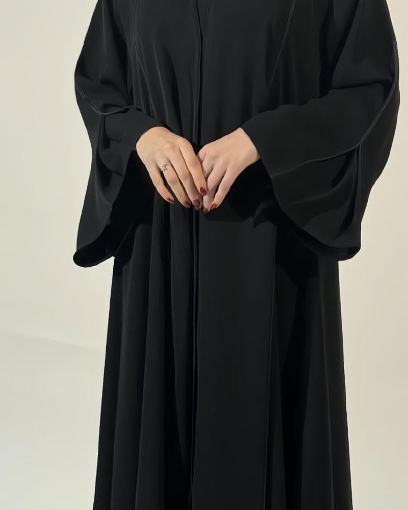 - يمنح التصميم بنصف كلوش العباية اتساعاً مميزاً وانسيابية تضيف لمسة أنثوية راقية وتسمح بحرية الحركة في جميع المناسبات.